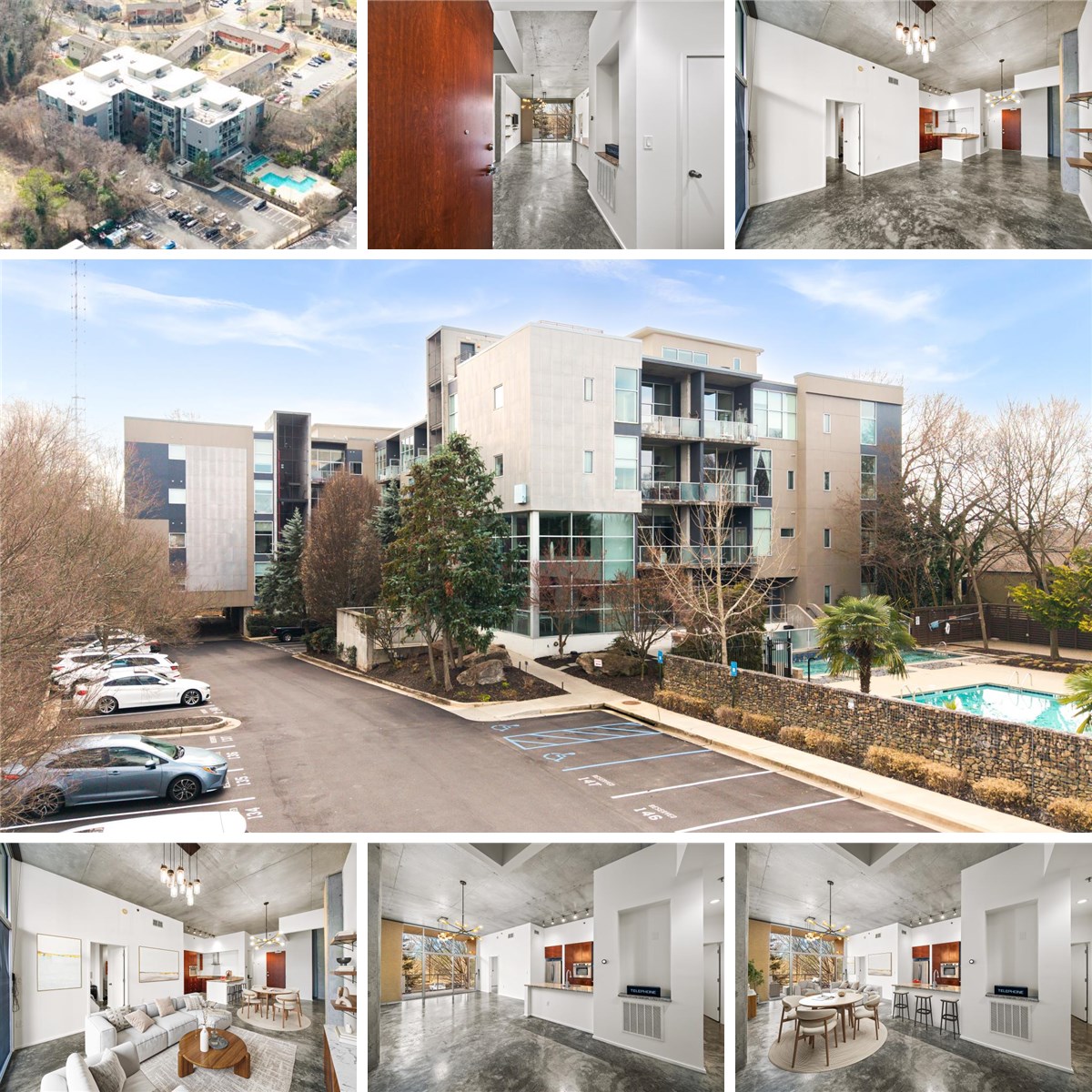 Modern luxury is yours in this 1 bedroom + Den/Office/Guest Room, 2 full bath Condo within Arizona Lofts II. Soaked in sunshine, this home has fresh paint throughout and features high ceilings, an open floor plan, private patio, upgraded lighting, and comes with its own secured storage unit! Open air Chef's kitchen is spacious with granite countertops, sleek cabinetry, stainless steel appliances & a fantastic prep space for cooking & entertaining. The elegant Owner's Suite includes a spa-like renovated bath ensuite with separate soaking tub and shower & large walk-in closet. This unit is outfitted with an additional bonus den which has the potential to be closed off as a secondary bedroom, office, or flex room. Two Parking Spaces, one of which is covered, are deeded along with two large storage units. The Arizona Lofts are nestled in the bustling and vibrant Edgewood neighborhood adjacent to Pullman Yards. Arizona Lofts II offers a wealth of amenities, including gated access, two saltwater pools with cabanas, fitness center to cater to your active lifestyle, and community entertainment space with club room and grills. Pet owners will appreciate the fenced-in private dog park, while the decks provide stunning city views—ideal for social gatherings or quiet evenings under the stars. Situated just steps away from the dynamic Pullman District, Fetch Dog Park, restaurants, and Marta access you'll have easy access to the best pop-ups and entertainment options intown Atlanta has to offer.